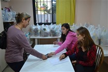 Offer a Food pack, and/or a Hygiene pack, and/or a Bread pack.