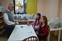 Offer a Food pack, and/or a Hygiene pack, and/or a Bread pack.